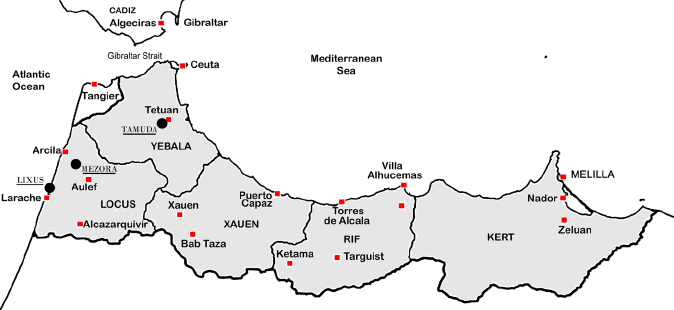 The map was taken from The Archaeology of the Spanish Protectorate of Morocco by Margarita Diaz-Andreu.