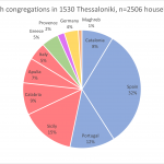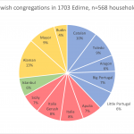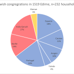 Historical sources help to reveal this history, forgotten behind the “1492 expulsion meme”. Yaron Ben Naeh’s Jews in the Realm of the Sultan explains how complex this history is. They reveal that Jews from Southern Italy– one of the most populous Jewish communities of the medieval world– were also expelled from their homeland region in a similarly dramatic fashion, with most exiles traveling to the Ottoman Empire. In addition, we learn about the local Romaniote Jewish communities, descending from Jews who had resided in Greece and Turkey for centuries. Both of these communities came together with Sephardic exiles and Ashkenazi migrants to form the bulk of Eastern Sephardim ancestry. See below for congregation census records from the 16th-18th centuries for Edirne in Bulgaria and Thessaloniki in Greece which reveal much of Eastern Sephardic Jewish ancestry. Blue highlight denotes Iberian Jewish congregations, Red denotes Southern Italian Jewish congregations, Greece denotes Romaniote Jewish congregations, and Yellow denotes Ashkenazi Jewish congregations. Unknown congregations are usually mixed. Thanks to a fellow hobbyist researcher and friend of mine for collecting and sorting this data!